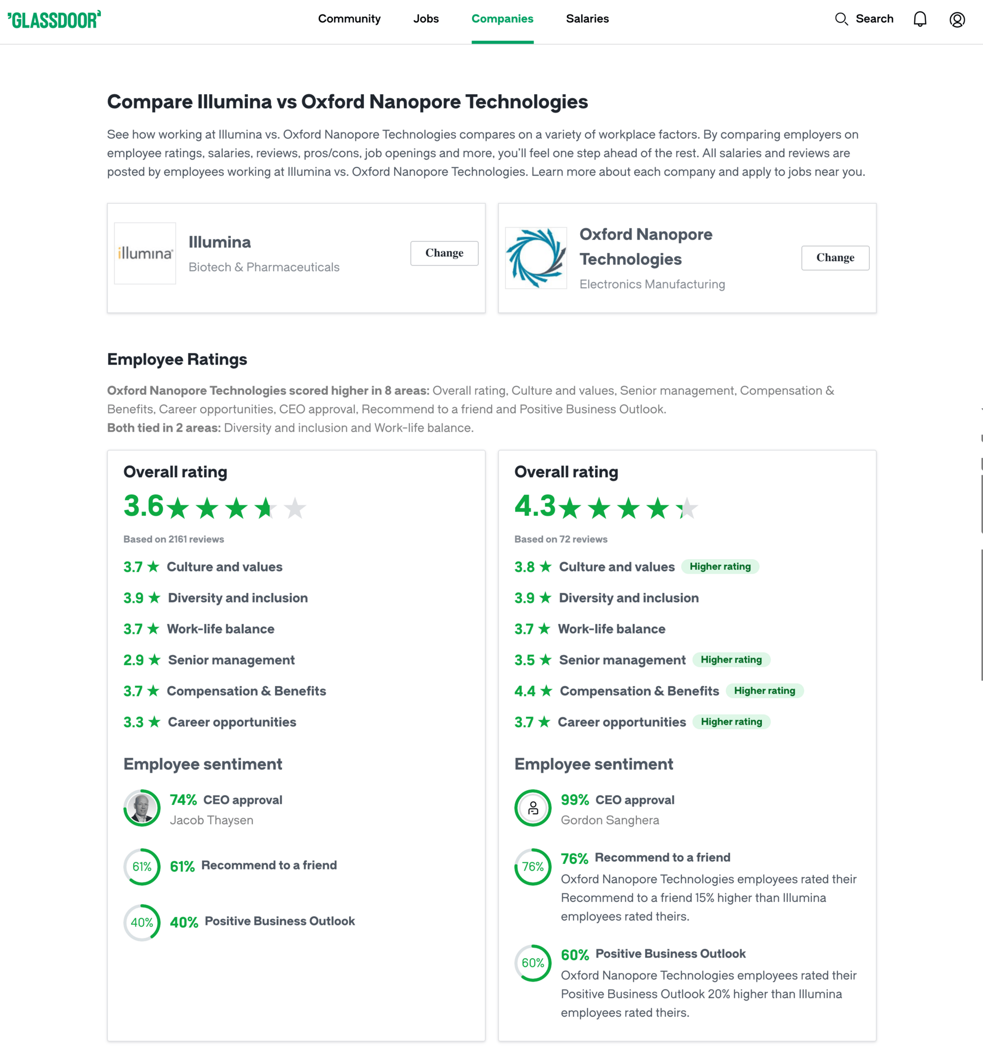 Website data isn't the only thing you might be interested in, and if you're looking for good information about your competitor's culture and hiring activities, look no further than Glassdoor.