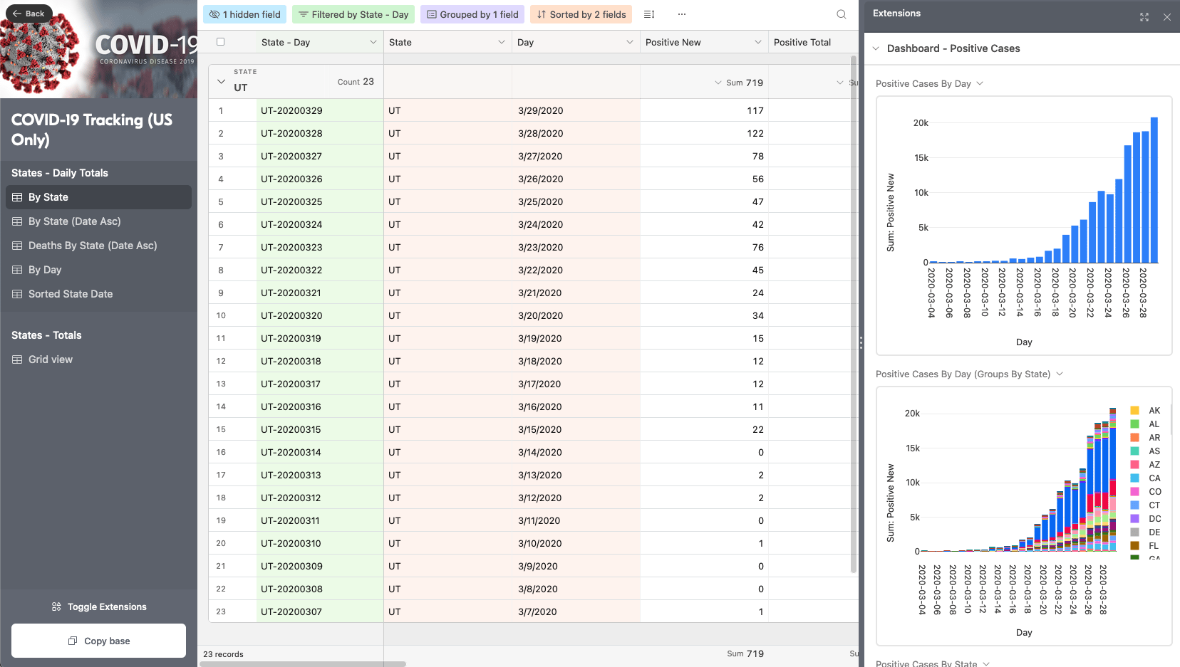 Airtable has also developed a lot of new features, like extensions to show you data as graphs, or the ability to build no-code apps from your database (which is a great way to create a collaborative tool).